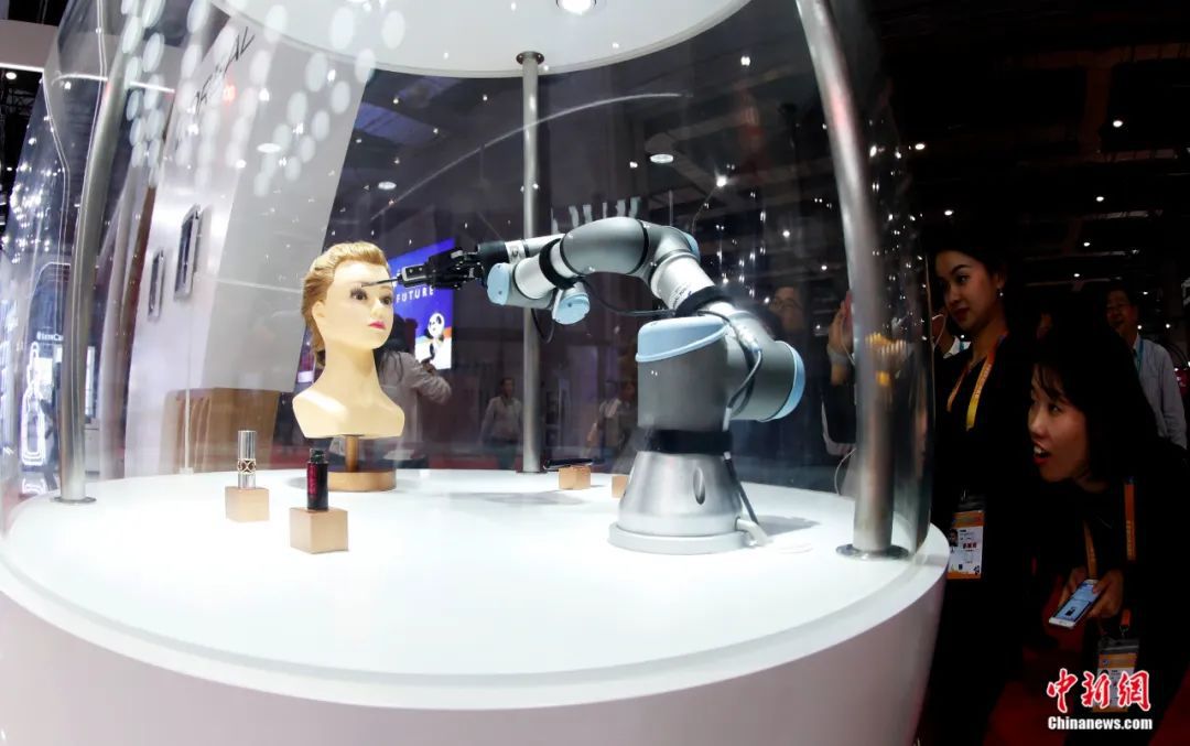 進博會上,展商正在展示機器人化妝技術。湯彥俊攝