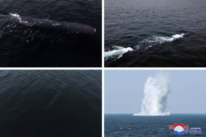 據(jù)報(bào)道,4月4日下午,朝鮮核無人潛水攻擊艇“海嘯—2”型在咸鏡南道金野郡加津港投入試驗(yàn),沿著在朝鮮東海設(shè)定的模擬1000公里距離的橢圓及八字形航線潛航71小時(shí)6分,4月7日下午到達(dá)咸鏡南道端川市龍臺港前海預(yù)定目標(biāo)水域,試驗(yàn)用戰(zhàn)斗部在水下成功爆炸。