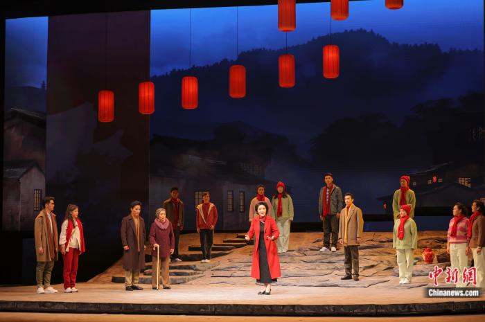 “秀山麗水給我們提供了豐富的創(chuàng)作素材和視覺沖擊,舞臺上我們在尾聲進行了再創(chuàng)作,把綠水青山帶來的視覺震撼進行了戲劇表達。我們不僅要呈現(xiàn)自然界的好風光,更要呈現(xiàn)人們心靈的綠水青山?!睂а輻钚∏嗾f。