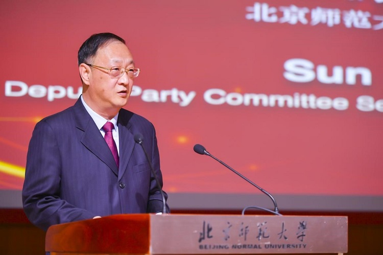 北京師范大學(xué)黨委副書(shū)記孫紅培發(fā)表致辭。北京師范大學(xué)提供圖片
