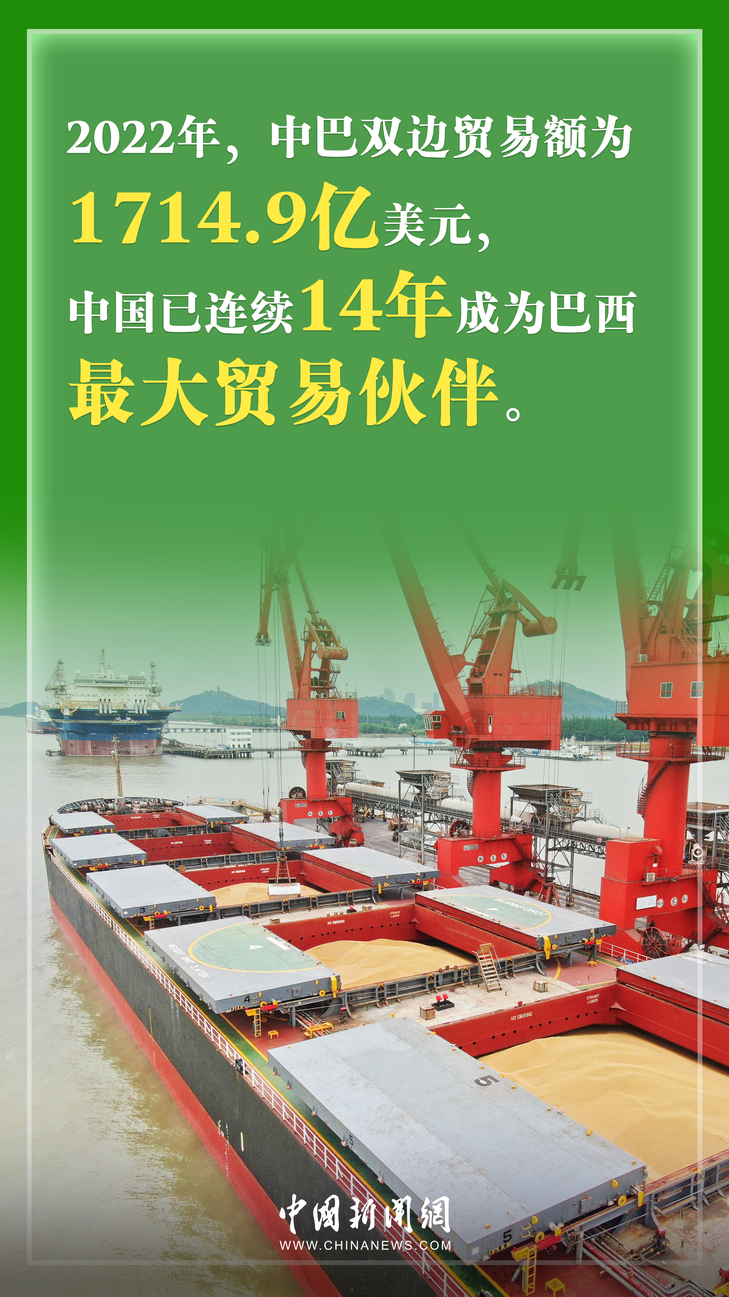 據(jù)中國(guó)官方媒體報(bào)道,2022年中巴雙邊貿(mào)易額為1714.9億美元,中國(guó)連續(xù)14年成為巴西最大貿(mào)易伙伴。截至2022年年底,人民幣已經(jīng)取代歐元成為巴西外匯儲(chǔ)備中第二重要的貨幣;中企投資建設(shè)運(yùn)營(yíng)的美麗山特高壓直流輸電二期項(xiàng)目,線路總長(zhǎng)約2500公里,令2200萬(wàn)巴西人受益,相當(dāng)于巴總?cè)丝诘?0%……