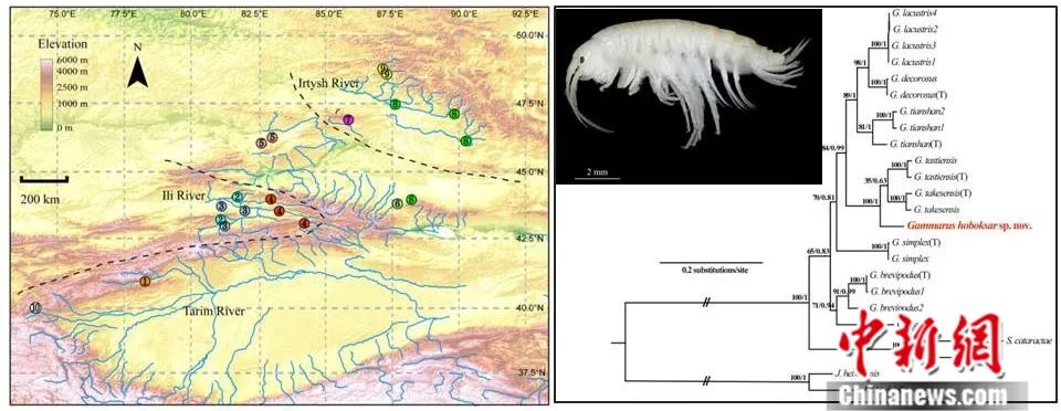 額爾齊斯河鉤蝦分布圖和鉤蝦新物種。受訪者供圖