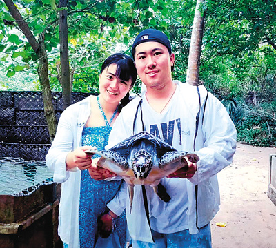 2018年,許振軒與李丹宜正在江蘇南京讀大學(xué)。一次偶然的機(jī)會(huì),兩人到斯里蘭卡體驗(yàn)了一場(chǎng)特殊的“海龜保育義工之旅”。許振軒一直非常喜歡去海洋館,宿舍還有好幾個(gè)烏龜?shù)??!翱粗鼈儚姆趸铰砷L(zhǎng),感覺(jué)非常奇妙。剛好一直關(guān)注的公眾號(hào)提供了研學(xué)機(jī)會(huì),我從眾多項(xiàng)目里選擇了‘海龜保育’。”許振軒的決定也影響了喜愛(ài)小動(dòng)物的女朋友李丹宜。