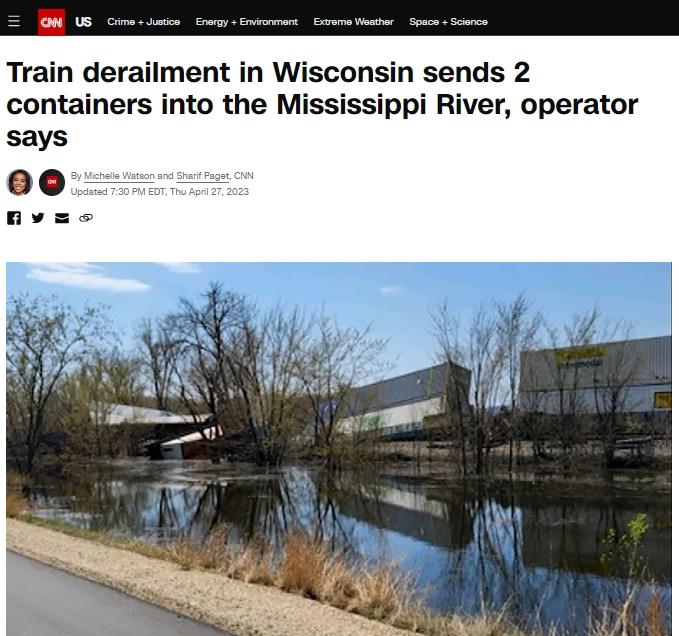 美國(guó)克勞福德縣應(yīng)急管理專家馬克·邁爾表示,這列火車載有危險(xiǎn)品。但他稱,掉進(jìn)河里的車廂中沒有任何被認(rèn)為是電池的有害物質(zhì)。