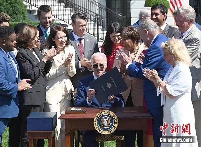 資料圖:當?shù)貢r間8月9日,美國總統(tǒng)拜登在白宮簽署《芯片和科學法案》。 中新社記者 陳孟統(tǒng) 攝