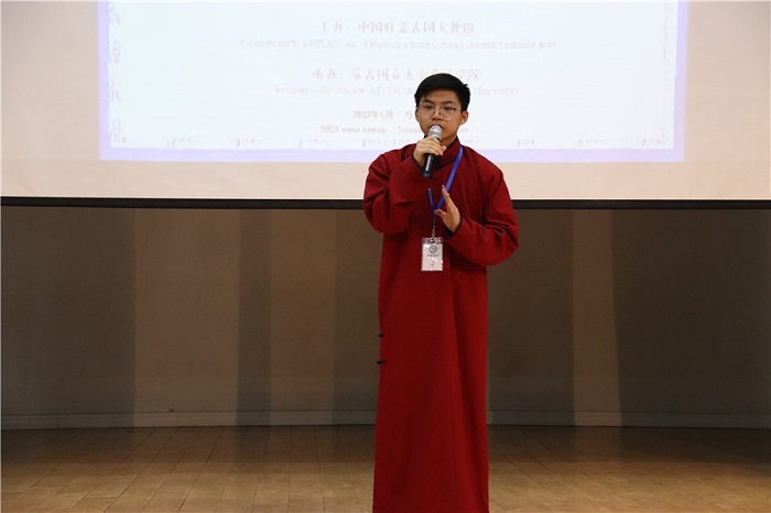 普通話中學(xué)的選手恩赫巴亞爾榮獲一等獎(jiǎng)。蒙古國立大學(xué)孔子學(xué)院供圖