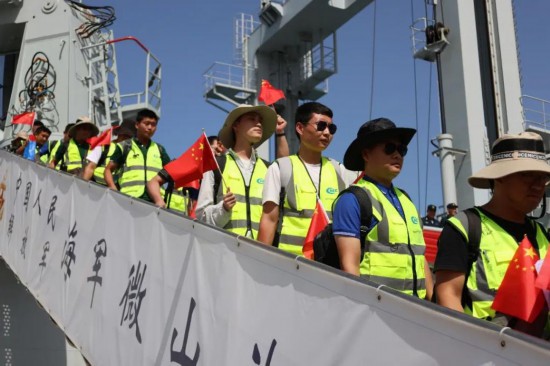 4月29日,從蘇丹撤離的中國(guó)公民乘坐中國(guó)海軍微山湖艦抵達(dá)沙特阿拉伯吉達(dá)港。新華社記者王海洲攝