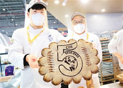 近日,第六屆中國國際進(jìn)口博覽會推介會在法國巴黎成功舉辦,不少法國農(nóng)業(yè)食品企業(yè)再次簽約。圖為去年舉行的第五屆中國國際進(jìn)口博覽會上,烘焙師在展示法式面包。