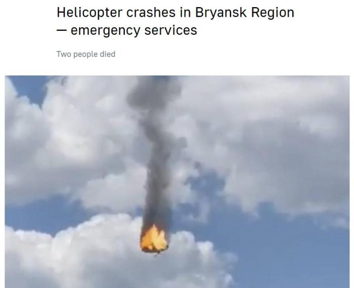 據報道,消息人士稱,“根據初步數據,一架直升機在克林茨市墜毀,原因是發(fā)動機起火?!?/p>