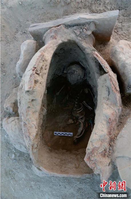 2018年貝什肯特墓地發(fā)現的甕棺葬。王建新 供圖