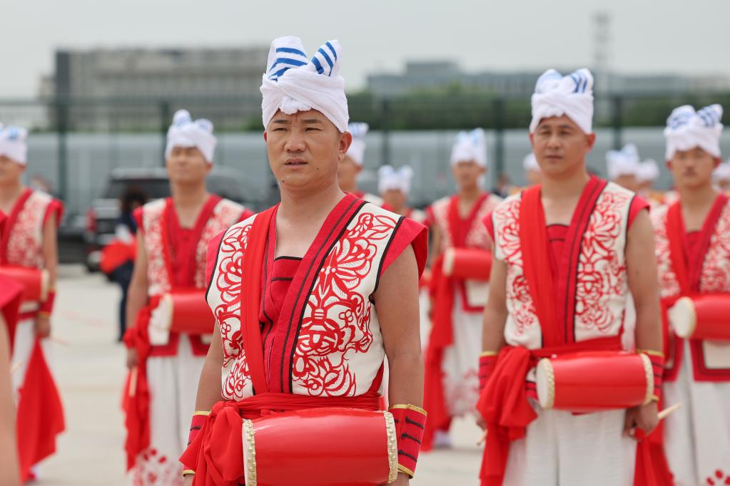 據(jù)悉,表演團隊包括50名陜北腰鼓表演者、48名陜北秧歌表演者、20名現(xiàn)場演奏的樂手和72名手捧鮮花列隊歡迎的少年兒童。腰鼓和秧歌表演者是來自陜西北部榆林市的民間藝人和群眾文化工作者,少年兒童來自西安市的三所小學(xué)?,F(xiàn)場音樂選用了帶有民間音樂元素的《春節(jié)序曲》的一部分。