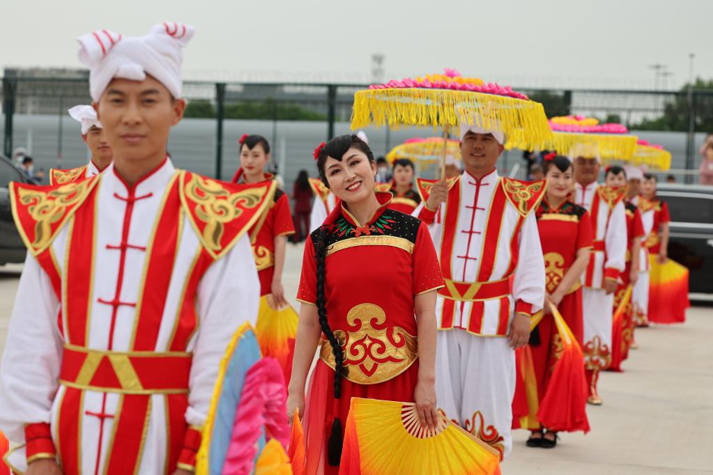 記者在西安咸陽國際機場看到,17日中午,由190人組成的表演團隊已經(jīng)準備就緒。當?shù)孛癖妼⒁詿崆榈难?、歡快的秧歌等民間藝術(shù)表演,歡迎來自中亞國家的貴賓。