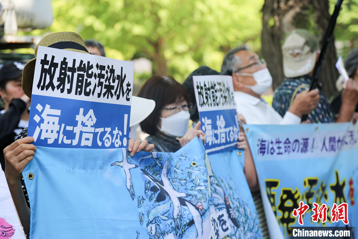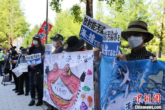 5月16日,日本民眾在東京電力公司總部前舉行集會,表達對日本政府和東京電力公司持續(xù)強推福島核污染水排海計劃的強烈反對。 中新社發(fā) 蔣文月 攝