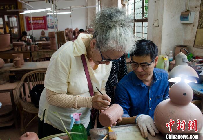 中新社欽州5月17日電 (翟李強(qiáng))“你泥中有我,我泥中有你。”正在廣西參訪的臺(tái)灣花蓮縣秀林鄉(xiāng)陶樸閣美學(xué)才藝發(fā)展協(xié)會(huì)理事長連美惠一邊哼著歌,一邊向記者介紹花蓮陶瓷與廣西欽州坭興陶“連親”的故事,她很開心再次來到廣西“再續(xù)前緣”。