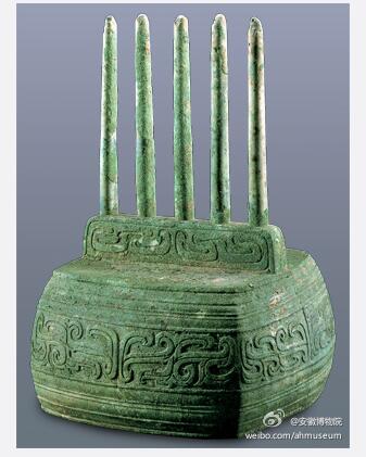 被稱為“西周路由器”的文物“云紋銅五柱器”。圖片來源:安徽博物院微博