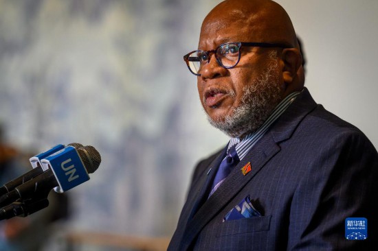 6月1日,在位于紐約的聯(lián)合國總部,特立尼達和多巴哥常駐聯(lián)合國代表丹尼斯·弗朗西斯當選第78屆聯(lián)合國大會主席后向記者發(fā)表談話。新華社發(fā)(聯(lián)合國供圖/洛伊·費利普攝)