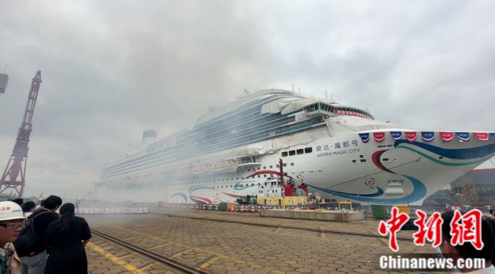 看,這艘身系“敦煌飛天彩帶”楚楚動(dòng)人的我國(guó)首艘國(guó)產(chǎn)大型郵輪“愛(ài)達(dá)·魔都”號(hào),今日盛裝出塢!