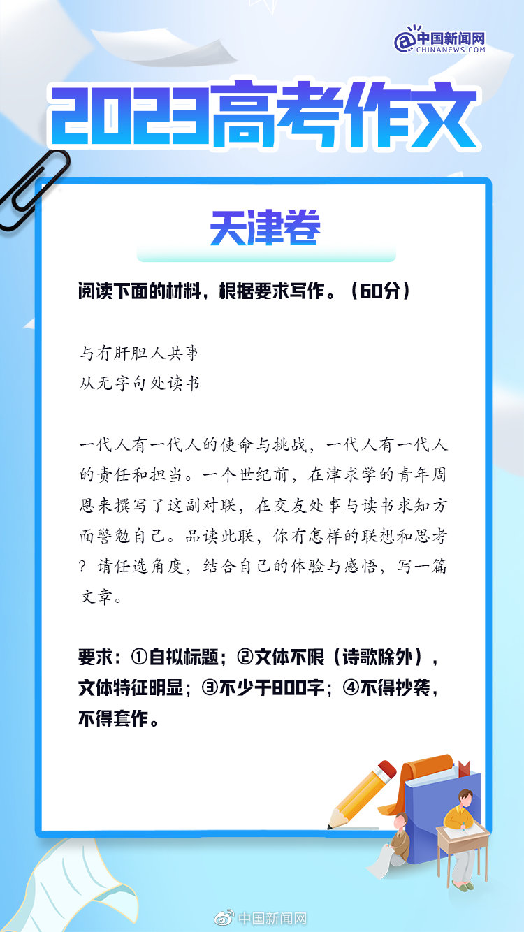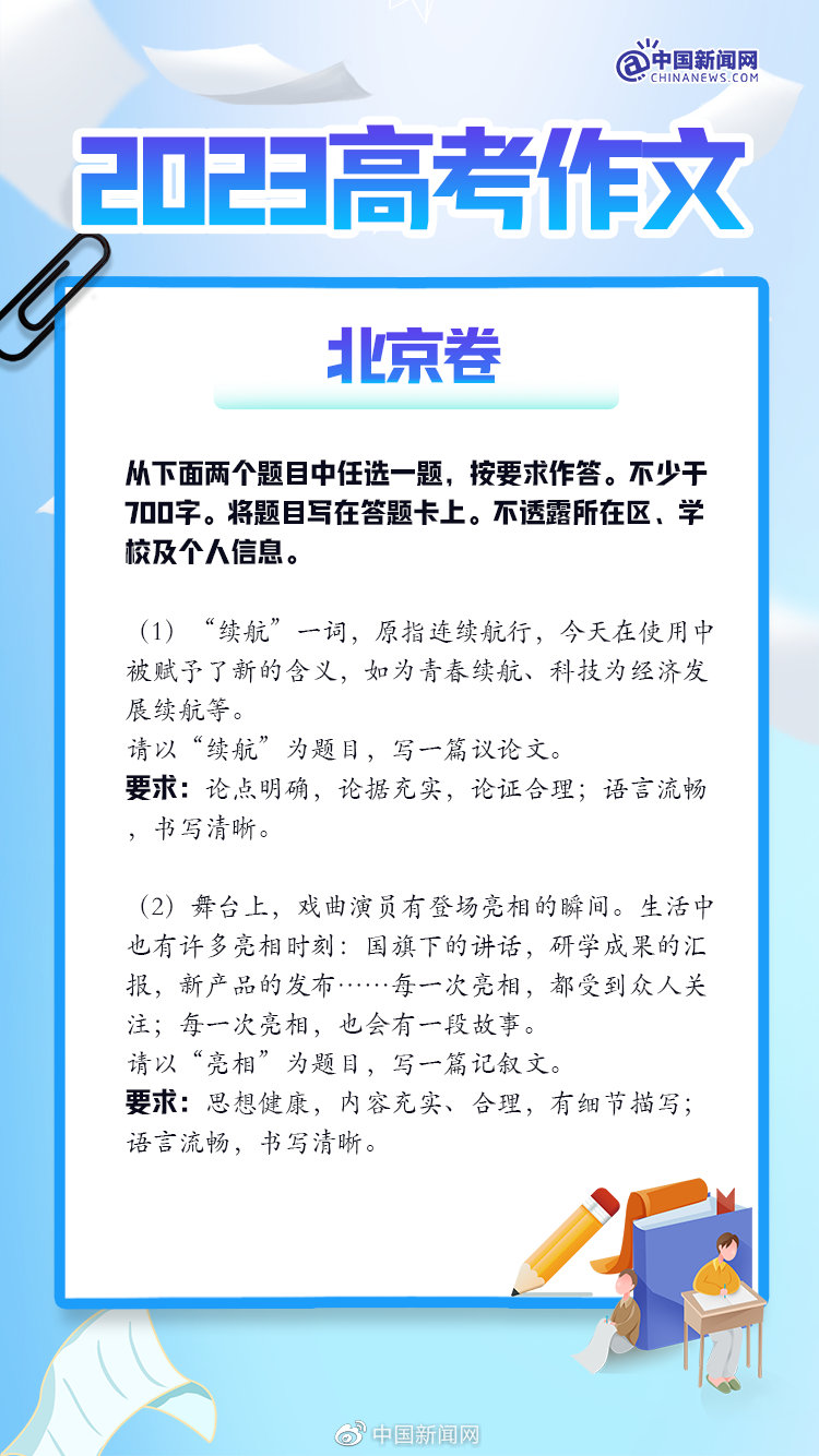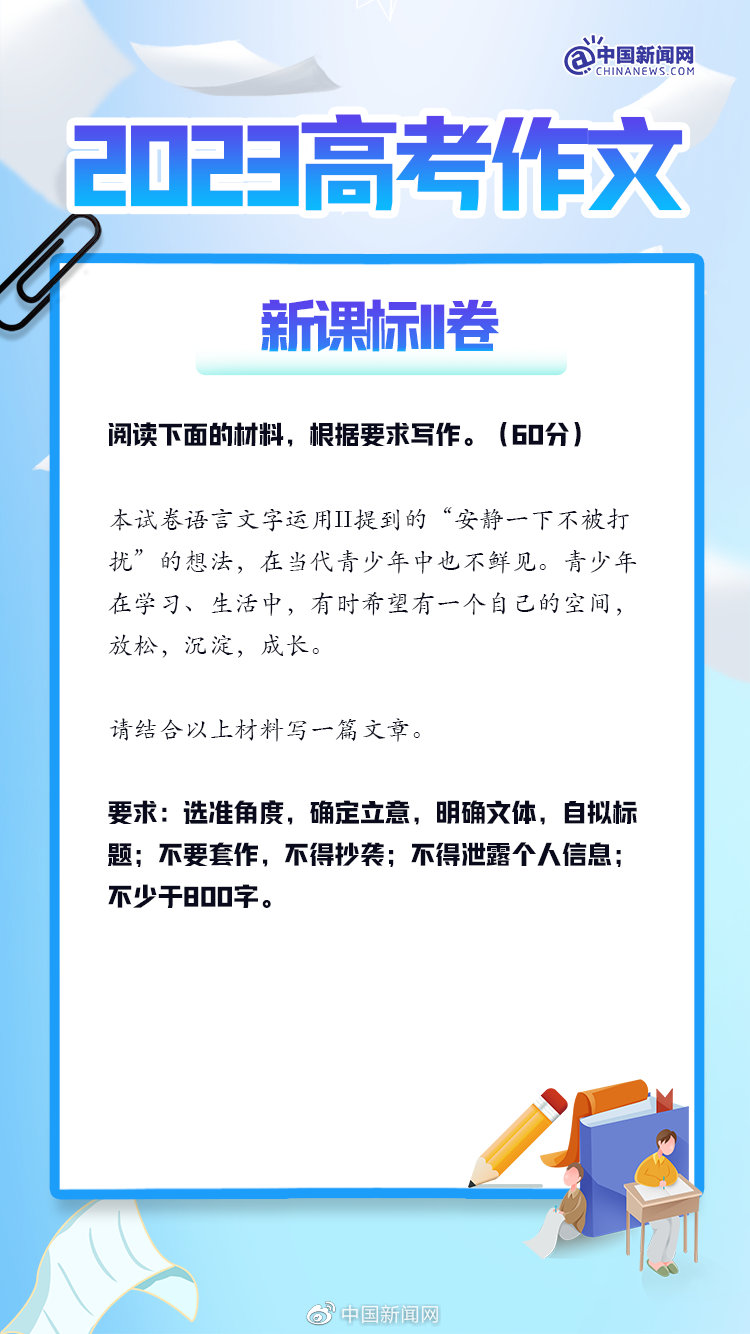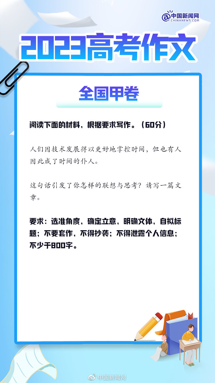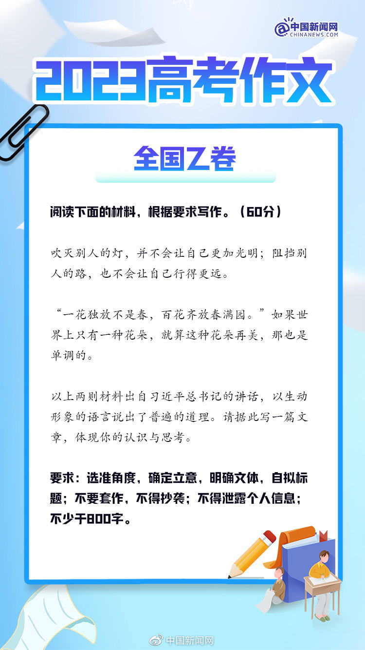據(jù)教育部新聞辦官方微信7日消息,2023年高考全國卷語文作文題出爐,具體如下: