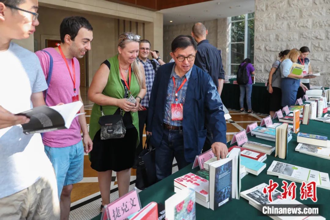 2018年,第五次漢學家文學翻譯國際研討會在貴陽舉行。圖為研討會上的翻譯作品展吸引海外翻譯家關注。賀俊怡 攝
