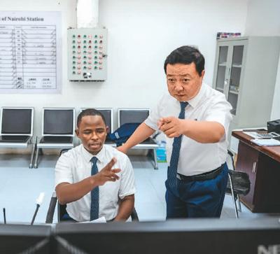 毛鑫是非洲之星鐵路運營公司運輸部內(nèi)羅畢車站運轉主任,他與徒弟彼得·恩堅加一起制定調(diào)度計劃、調(diào)控列車運轉。“我們無保留地把國內(nèi)的技術標準帶到肯尼亞,學員已達到國內(nèi)車站同等作業(yè)標準?!泵握f,幫助肯尼亞建設第一條現(xiàn)代化鐵路,是他人生中的亮點。彼得表示,自己從師父身上學到了許多專業(yè)技術,未來他將把知識傳授給更多人。