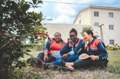 中國師父陳玲(右)是非洲之星鐵路運營公司工電部電子設備檢修工區(qū)工長。在肯尼亞工作4年來,她見證了女學員們電務技術的成長?!艾F(xiàn)在她們都能獨當一面。”陳玲說。朱迪思(左)是陳玲的學員之一,她從師父那里獲得的不僅是技術,工作間隙對飲食、文化等多維度的交流同樣讓她受益匪淺?!拔覀冎g是師徒,更是姐妹。”朱迪思說。圖為陳玲在休息時教學員唱中文歌曲。