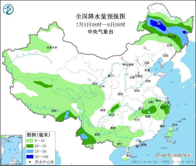 中新網(wǎng)7月4日電 據(jù)中央氣象臺(tái)網(wǎng)站消息,中央氣象臺(tái)今晨繼續(xù)發(fā)布暴雨藍(lán)色預(yù)警:預(yù)計(jì)今明兩天,東北地區(qū)及內(nèi)蒙古東北部將成強(qiáng)降雨主陣地,其中今天白天至夜間,內(nèi)蒙古東北部、黑龍江西南部、吉林、遼寧中東部等地部分地區(qū)有大到暴雨,遼寧東北部等局地有大暴雨(100~120毫米);上述部分地區(qū)伴有短時(shí)強(qiáng)降水(最大小時(shí)降雨量20~50毫米,局地可超過60毫米),局地有雷暴大風(fēng)等強(qiáng)對(duì)流天氣。明天,內(nèi)蒙古東北部、黑龍江大部、吉林北部有中到大雨,局地暴雨。受強(qiáng)降雨影響,內(nèi)蒙古東北部、東北部分地區(qū)等地有暴雨災(zāi)害中高風(fēng)險(xiǎn),關(guān)注局地可能發(fā)生的山洪、地質(zhì)災(zāi)害和城鄉(xiāng)積澇,并防范強(qiáng)對(duì)流天氣的危害。