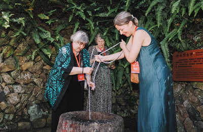 走過(guò)枝繁葉茂的千年柳杉,穿過(guò)青石鋪就的鼓嶺老街,在始建于1914年的萬(wàn)國(guó)公益社,大家圍坐桌前共敘鼓嶺情緣,一幅穿越時(shí)光的友誼畫(huà)卷緩緩打開(kāi)。