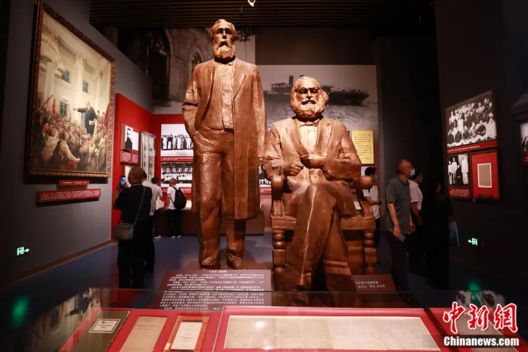 中國(guó)共產(chǎn)黨歷史展覽館內(nèi)的馬克思、恩格斯雕塑。陳曉根 攝