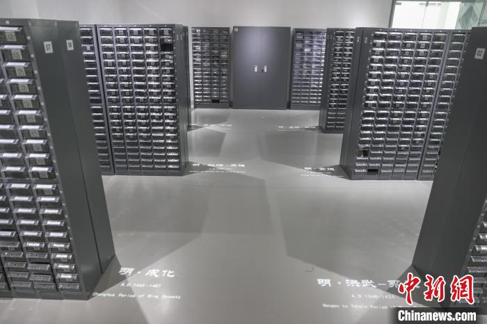 在基因庫內(nèi),被收集的古瓷片被制成標(biāo)本形態(tài)放入小盒中,按照年代劃分存入柜中。中新社記者 劉力鑫 攝