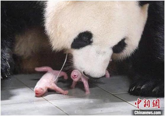 當(dāng)?shù)貢r(shí)間2023年7月7日,大熊貓“愛寶”在韓國三星愛寶樂園產(chǎn)下雙胞胎幼崽。圖為“愛寶”與幼崽。 (韓國三星愛寶樂園供圖)