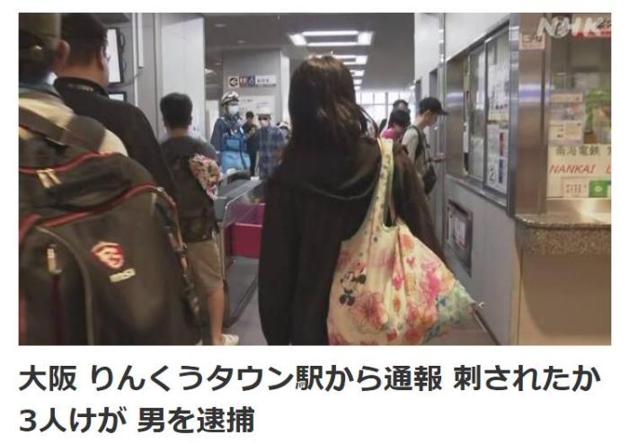 當(dāng)?shù)貢r間23日上午10時30分許,日本大阪泉佐野市的臨空鎮(zhèn)車站發(fā)生了一起持刀傷人事件。圖片來源:日本放送協(xié)會(NHK)報道截圖