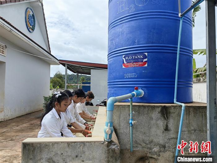 俄勒塞村小學(xué)距離柬埔寨首都金邊約300公里。由兩個(gè)巨大的藍(lán)色圓形容器組成的反滲透純水處理系統(tǒng)矗立在校園一隅。一個(gè)月前,這套設(shè)備正式投入使用。擰開水龍頭,一股清澈透明的純凈水嘩嘩直流,學(xué)生們臉上洋溢著喜悅的笑容。
