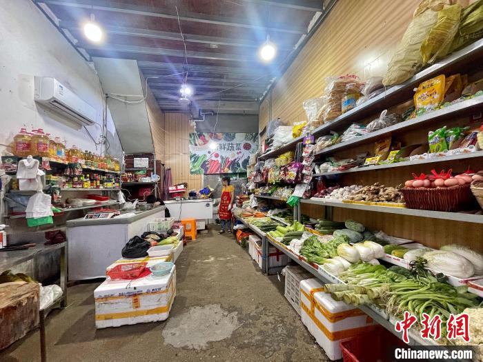 蘭田村內(nèi),李先生經(jīng)營的生鮮蔬菜店已恢復(fù)正常經(jīng)營。呂巧琴 攝