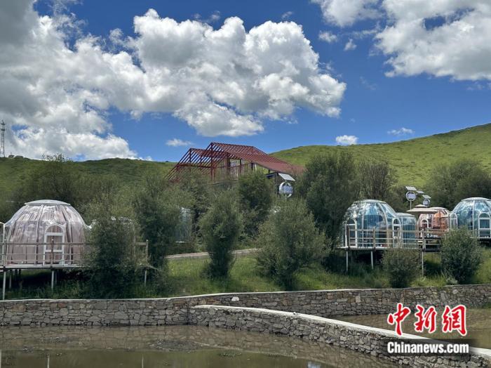 在園區(qū)內(nèi),除了大面積的草場,還能看見一些臨水而建、顏色各異的圓形房間。王春貴介紹稱,那是供游客休閑的星空房。目前,紅原牦牛現(xiàn)代農(nóng)業(yè)園區(qū)正朝著牧旅融合的道路發(fā)展,咖啡屋、星空房等休閑設(shè)施以及牧旅融合體驗(yàn)區(qū)已初步建設(shè)完成。“全部建成以后,游客還能在園區(qū)內(nèi)體驗(yàn)牦牛喂養(yǎng)?!蓖醮嘿F說。
