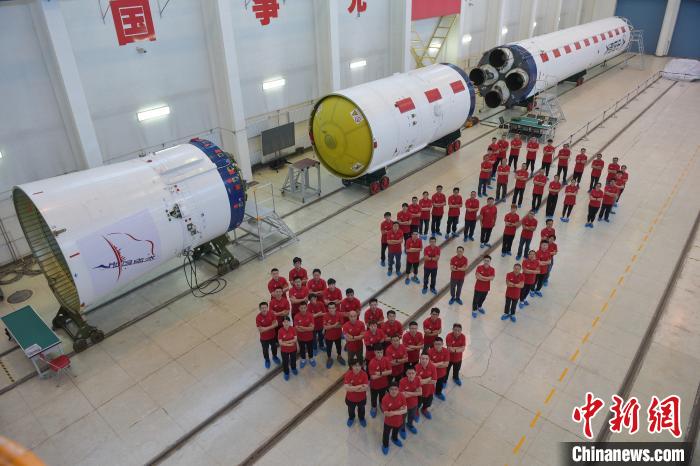 8月1日,長征四號丙運載火箭研制團隊站成數(shù)字“100”的隊形。(中國航天科技集團有限公司八院 供圖)