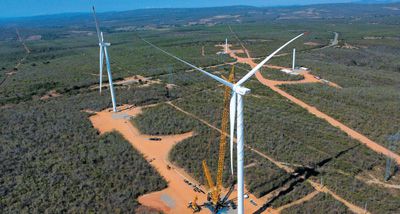 位于巴西巴伊亞州的風電項目正在進行機器吊裝。