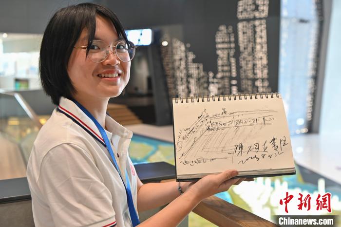 8月8日,2023年全國臺聯(lián)第二十屆臺胞青年千人夏令營廣東分營在廣州開營。圖為一名臺灣青年學(xué)生展示自己素描的廣州陳家祠。中新社記者 陳驥旻 攝
