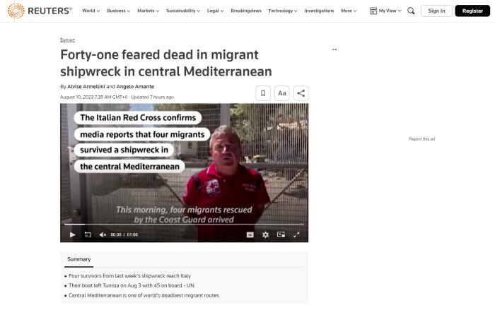 據(jù)路透社報(bào)道,該艘移民船3日從突尼斯斯法克斯地區(qū)出發(fā),但在當(dāng)天夜間就因大浪襲擊而傾覆沉沒。船上共載有45人,其中包括3名兒童。目前4人幸存,41人可能遇難。