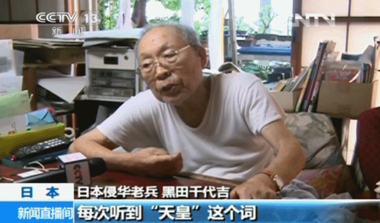 黑田千代吉也是一名日本侵華老兵,回憶起戰(zhàn)爭(zhēng),他表示,因?yàn)閺男∈艿健盀樘旎识鴳?zhàn)”的教育,每當(dāng)聽(tīng)到“天皇”這個(gè)詞,他就會(huì)畢恭畢敬地站著聽(tīng)。沒(méi)人告訴他,日本發(fā)動(dòng)的是侵略戰(zhàn)爭(zhēng)和發(fā)動(dòng)戰(zhàn)爭(zhēng)的動(dòng)機(jī)等事實(shí)。他為曾經(jīng)犯下的惡行,向當(dāng)年所行之處遇到的中國(guó)人,致以誠(chéng)摯歉意。