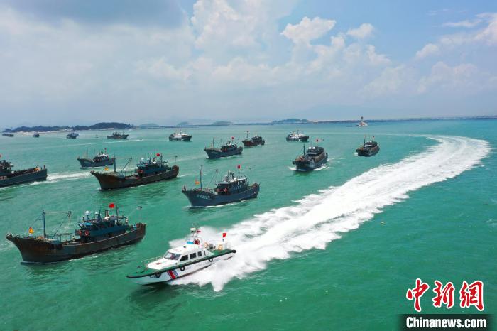 中新網(wǎng)漳州8月16日電(蔡曉曄)16日12時起,北緯26度30分以南的東海結(jié)束為期3個半月的伏季休漁期,在福建省漳州市各碼頭,眾多漁船在海警艦艇的護(hù)航下有序駛離漁港,千帆競發(fā)奔赴不同漁區(qū)開展捕撈作業(yè)。