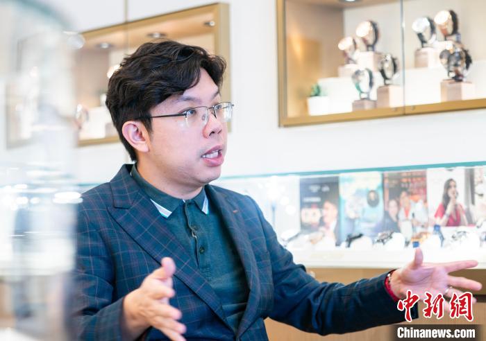 香港陀飛輪手表品牌“萬希泉”創(chuàng)始人沈慧林日前接受中新社記者采訪?!≈行律缬浾?侯宇 攝