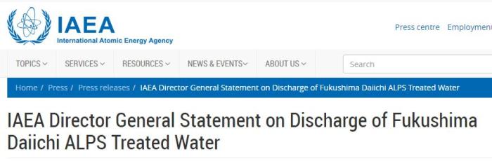 中新網(wǎng)8月24日電 據(jù)國際原子能機構(gòu)(IAEA)網(wǎng)站消息,當?shù)貢r間24日,IAEA發(fā)布聲明稱,該機構(gòu)現(xiàn)場專家證實日本東京電力公司(東電)當日開始將儲存在福島第一核電站的核污染水排入大海。