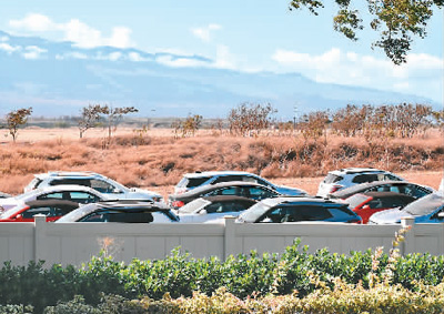 8月24日,美國夏威夷毛伊島卡胡盧伊機(jī)場外的一片空地上停放著租車公司沒有租出去的汽車。
