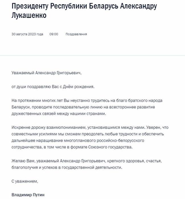 據(jù)報道,克里姆林宮網(wǎng)站發(fā)布了生日賀電內(nèi)容。賀電中稱,多年來,盧卡申科一直為白俄羅斯的人民利益不懈努力。普京表示真誠珍視同白俄羅斯的互信關(guān)系。