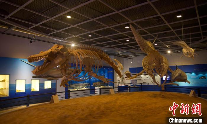 圖為蔚山長生浦鯨魚博物館展出的實物鯨魚骨骼。 中新社發(fā)王悅攝