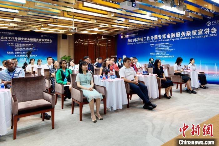 中新網(wǎng)南寧9月3日電(鄧卓媛 楊陳)9月2日,由廣西壯族自治區(qū)科技廳(外國專家局)主辦的“2023年在桂工作外國專家金融服務(wù)政策宣講會(huì)”在南寧舉行。來自法國、加拿大、巴基斯坦、泰國、埃及、馬來西亞、尼日利亞等13個(gè)國家近20名在桂工作外國專家參加了此次活動(dòng)。