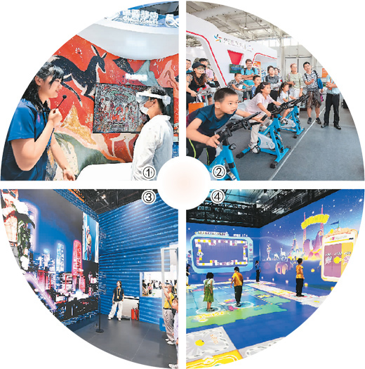 圖④:今年服貿(mào)會專題展聚焦行業(yè)熱點和發(fā)展趨勢,覆蓋AI和元宇宙技術(shù)、消費電子服務(wù)等內(nèi)容。圖為服貿(mào)會首鋼園展區(qū),小觀眾在體驗沉浸式游戲。