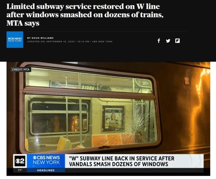《紐約時報》稱,截至13日上午11時,工作人員已修復(fù)了25輛列車的車窗。預(yù)計修復(fù)全部受損車窗的費用將高達50萬美元。此次事件影響了數(shù)十萬紐約人的通勤,紐約地鐵W線是此次事件中受損最為嚴重的地鐵線路。