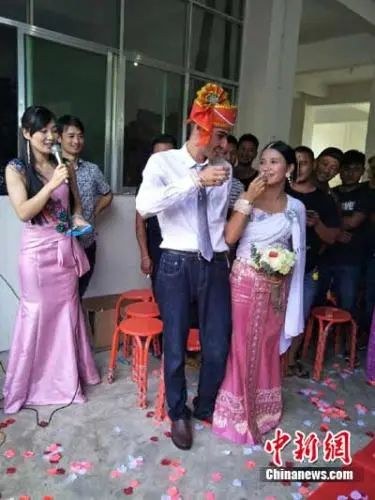 圖為2017年,景邁山傣族姑娘玉擺與法國(guó)小伙威廉喜結(jié)良緣。鐘欣 攝
