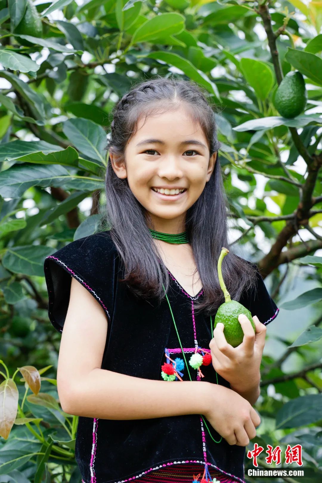 圖為佤族少女與牛油果。普洱市委宣傳部供圖